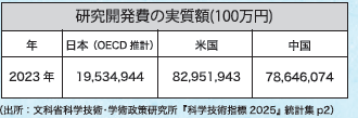 研究開発費を国際比較すると、その差は歴然です。米中の研究開発費の実質額がそれぞれ約82兆9500億円、約78兆6400億円であるのに対し、日本は約19兆5300億円となっており、莫大な研究力を有する米中に比べて4倍以上も少ないという統計が出ています。この資金力の差が、自国発の独創的な基礎研究を行う力の差に直結していると考えられます。